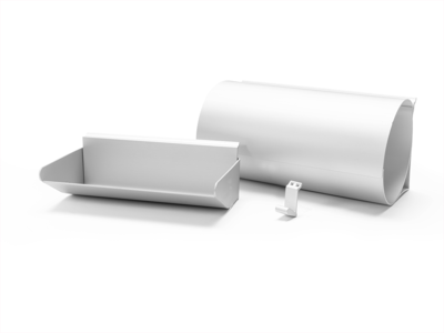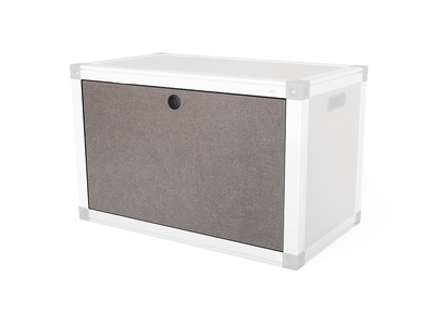 Eine Tür inkl. Anbauteilen für das Schrankmodul. Unten beschlagen und von oben zu öffnen.