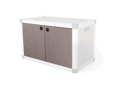 Zwei Türen inkl. Anbauteilen für das Schrankmodul. An beiden Seiten beschlagen und in der Mitte zu öffnen.