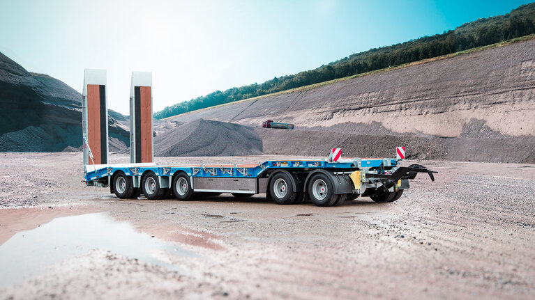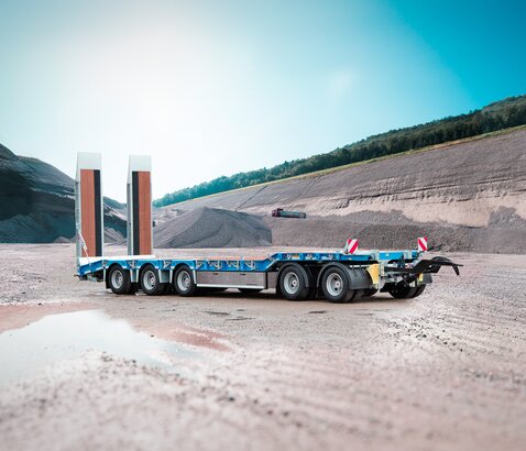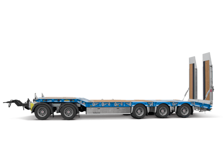 - Massive Schweißkonstruktion aus hochfestem Feinkornstahl, durchgestreckte Querträger für höchste Stabilität, heckseitig Kletterleisten an Auffahrschräge für max. Sicherheit bei Be- und Entladung
