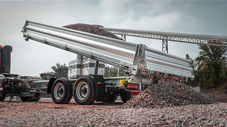 - Motorhydraulisches Dreiseiten-Kippwerk, fünfstufiger, Zylinder mit Hubbegrenzung