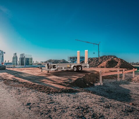 Wenn Sie auf Baustellen unterwegs sind, brauchen Sie einen Baumaschinentransporter, der Ihnen ungewöhnliche Transportmöglichkeiten bietet. Auf unseren Tandem-Tieflader HBT BS können Sie Ihre Baumaschinen über klappbare und seitlich verschiebbare Rampen fahren. Sein spezielles Fahrgestell mit Pendelausgleich sorgt für sicheres Beladen und Fahren auch auf schlechtem Untergrund.