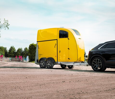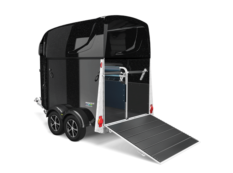 Je nach Modell verfügen PEGASUS Pferdeanhänger über unterschiedliche EquiDrive®-Fahrwerksvarianten, die neben dem niedrigen Schwerpunkt des Anhängers als weiterer Pluspunkt für gute Traktion und aktive Fahrsicherheit sorgen. Weiteres Sicherheitsfeature ist die EquiGuard® Panikentriegelung, die im Notfall für schnelle, einfache Öffnung von Brust- und Heckstange sorgt.