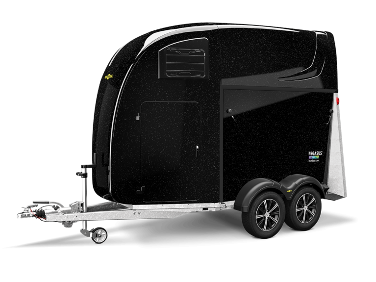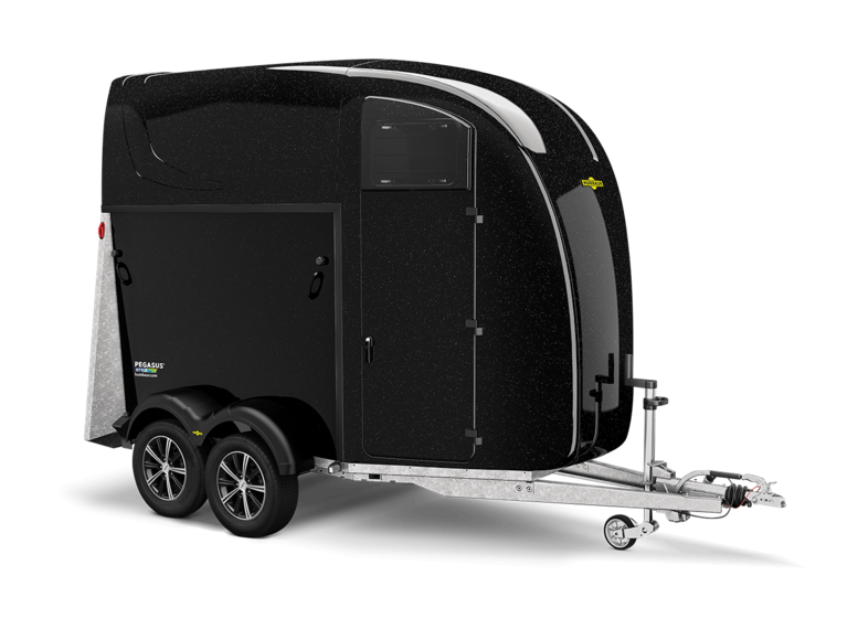 Das moderne, an Aerodynamik ausgerichtete Design der Poly-Front sorgt für geringen Luftwiderstand. Positiver Nebeneffekt: die extra hohe Sattelkammer. Das EquiSpace® Innenraumkonzept schafft bei den PEGASUS Style Transportanhängern mit 2.370 mm Innenraumhöhe besonders viel Kopffreiheit für’s Pferd. Seitentrittschutz sowie die EquiLock® Trennwand gehören zur Serienausstattung.