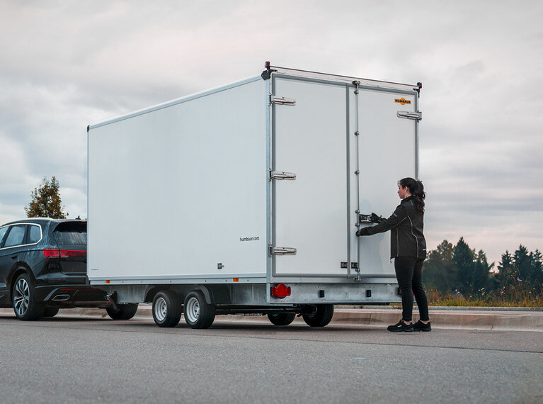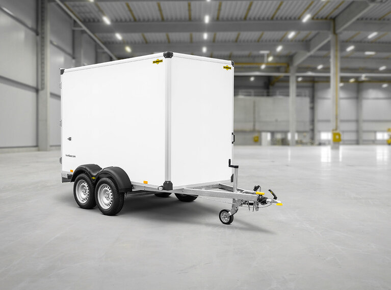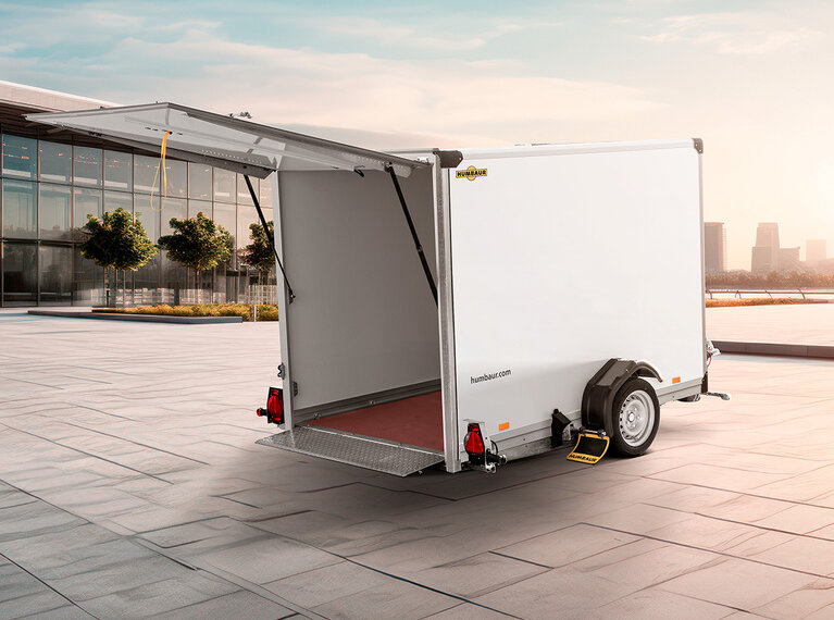 Der clevere Kofferanhänger mit intelligenter Absenkmechanik. Die Ladefläche kommt Ihnen beim Be- und Entladen entgegen. Es entsteht ein flacher Auffahrwinkel von nur 4 bis 6 Grad. Mit der integrierten Auffahrklappe und nach oben öffnender Heckklappe ist dieser Anhänger der perfekte Partner für bequemes Verladen.