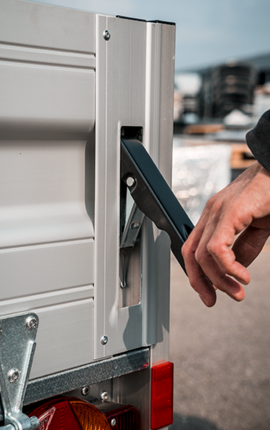 - Verzurringe (4 St. bis 2050 mm / 6 St. ab 2510 mm Kastenlänge) in den Seitenbordwänden integriert, Zugkraft 400 kg pro Zurring, Dekra geprüft.