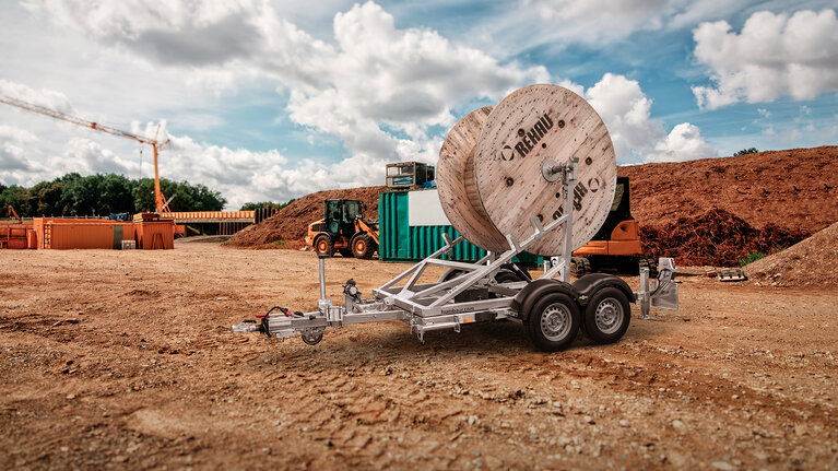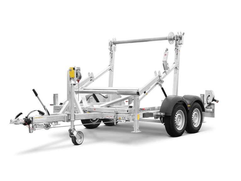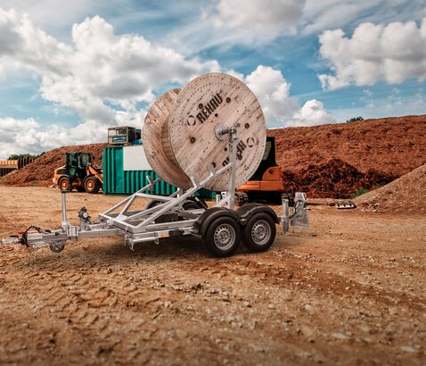 • Für Kabeltrommeln bis zu einem Durchmesser von 2800 mm und einer Breite von 1450 mm ausgelegt
