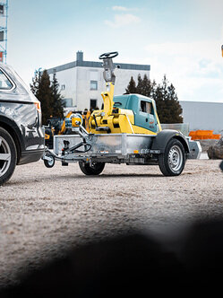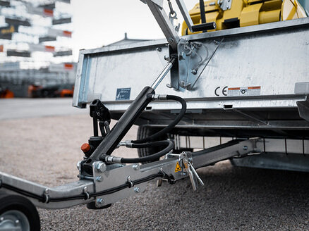 Der Tieflader bringt alle Features mit, um den Transport der Rüttelplatte zum Einsatzort bestmöglich zu lösen. Dank den doppelwirkenden Zylindern kann der Anhänger um 17 ° geneigt werden und ermöglicht mit der robusten Stahlbrücke einen minimalen Auffahrwinkel. Das Beladen der Rüttelplatte erfolgt aufgrund der abnehmbaren Seilwinde nicht mit externen Maschinen. So können Rüttelplatten mit einem Gewicht von bis zu 500 kg mühelos alleine beladen werden. Ist die Maschine auf dem HA 751612 geladen, garantieren neun Zurrbügel den nötigen Standard für die Ladungssicherung – je vier Zurrbügel mit 800 kg Zugkraft an den Seiten und ein weiterer Zurrbügel an der Front. Ein Verrutschen oder Umkippen des Vibrationsstampfers ist hier nicht mehr möglich.