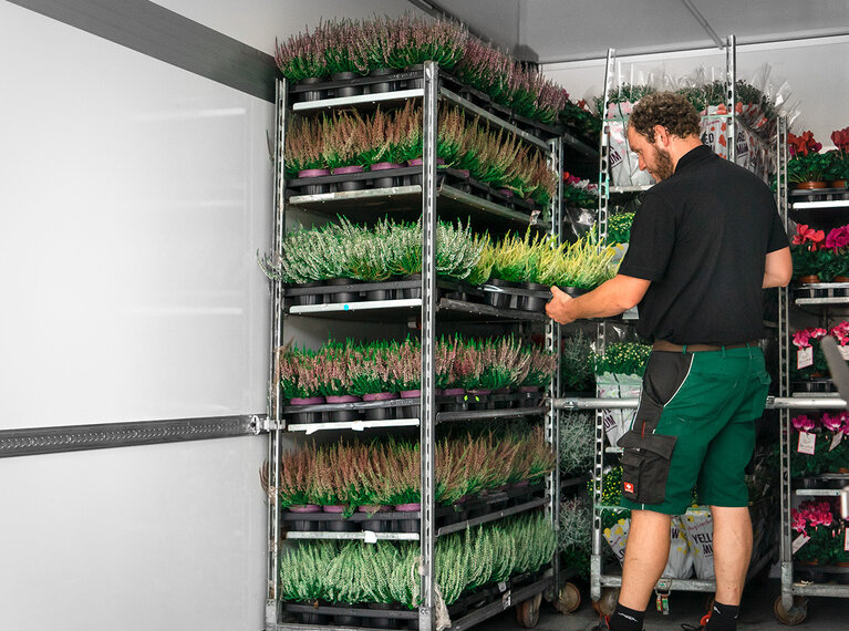 Sogar bestens. Denn der Kofferaufbau wurde speziell für die Anforderungen des Gärtnerei-Großhandels konzipiert. Das gesamte Fahrzeug ist nicht nur nutzlastoptimiert, sondern mit einem speziellen Transportsicherheits-System ausgestattet. Dank diesem lassen sich die typischen CC-Container schnell und einfach sichern. Aber das ist noch nicht alles. Damit die blumige Ladung im Winter nicht friert, wärmt eine Standheizung den Laderaum. Und im Sommer? Sorgen Lüftungsöffnungen für ausreichend Frischluft. So kommen die Pflanzen wie beispielsweise Chrysanthemen, Cyclamen und Weihnachtsstern immer frisch und fröhlich an ihrem Ziel an. Aber von vorne.