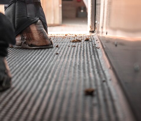Bei handelsüblichen Holzböden können bereits kleine Beschädigungen Feuchtigkeit eintreten lassen. Die Folge: Das Holz wird morsch. Bleibt der Feuchtigkeitsschaden zu lange unbemerkt, kann das verheerende Konsequenzen nach sich ziehen. Im schlimmsten Fall bricht das Pferd durch den morschen Anhängerboden durch. Auch eine beschädigte Gummimatte kann unbemerkt dazu führen, dass sich Feuchtigkeit und Schmutz darunter sammeln und den Holzboden angreifen. Pferdeanhänger, die mit einem solchen Boden ausgestattet sind, sollten daher auch zu jeder Zeit trockenstehen. Ihn auf einer Wiese abstellen? Aufgrund von aufsteigender Feuchtigkeit keine gute Idee!